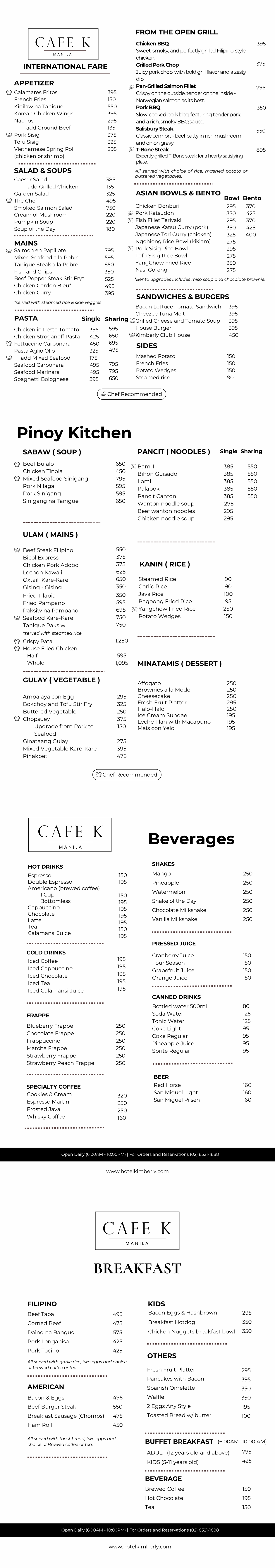 Café K is a full-service restaurant offering hit the spot local cuisines and comfort international food.